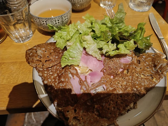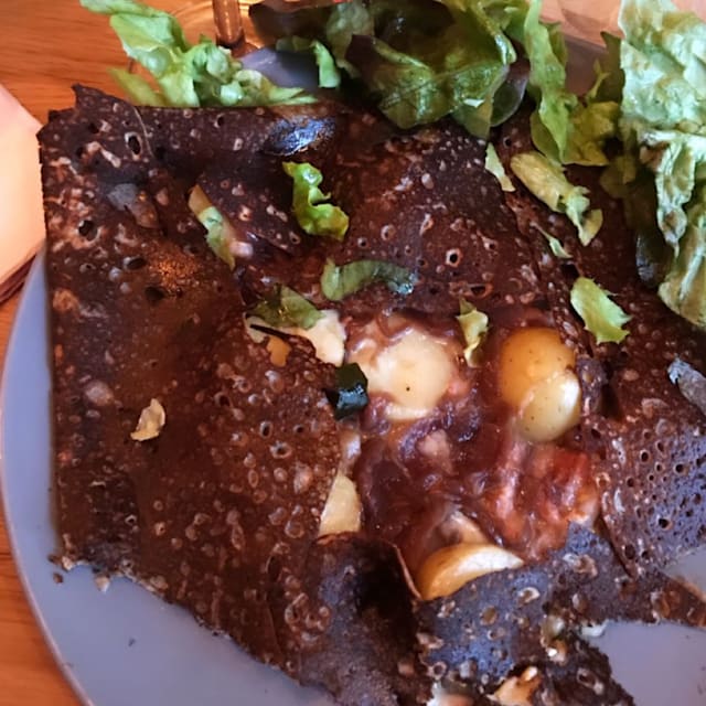 5/10I was really disappointed in our experience, based on the Trip Advisor reviews that we saw. The service staff seemed annoyed with us. We couldn't dodge the fruitflies buzzing around our faces. The crepes were fine, but not anything fantastic. I ate the duck confit salad, which was really good. My husband had the Roasted Figs and Nuts salad and the "roasted figs" were the selling feature to him. There were no roasted figs in the salad. We weren't sure if the balsamic glaze on the side of the plate was supposed to be the figs, but once we received our main courses, we realized that it was only a garnish. All-in-all, in a 10 day trip, it was probably in our top 3 more disappointing dining experiences.