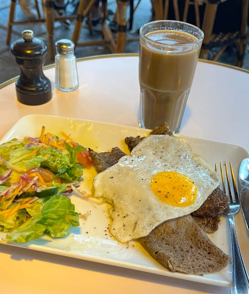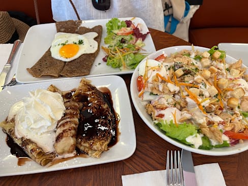 10/10Fabulous casual creperie right on Seine. Had both savory and sweet crepes. Everyone was pleased. Service is impeccable - some of the best we've had in France - food came out quickly and matched our order, prompt refills on water, wine kept iced, umbrellas repositioned to provide shade. Crepes and wine were an excellent value.