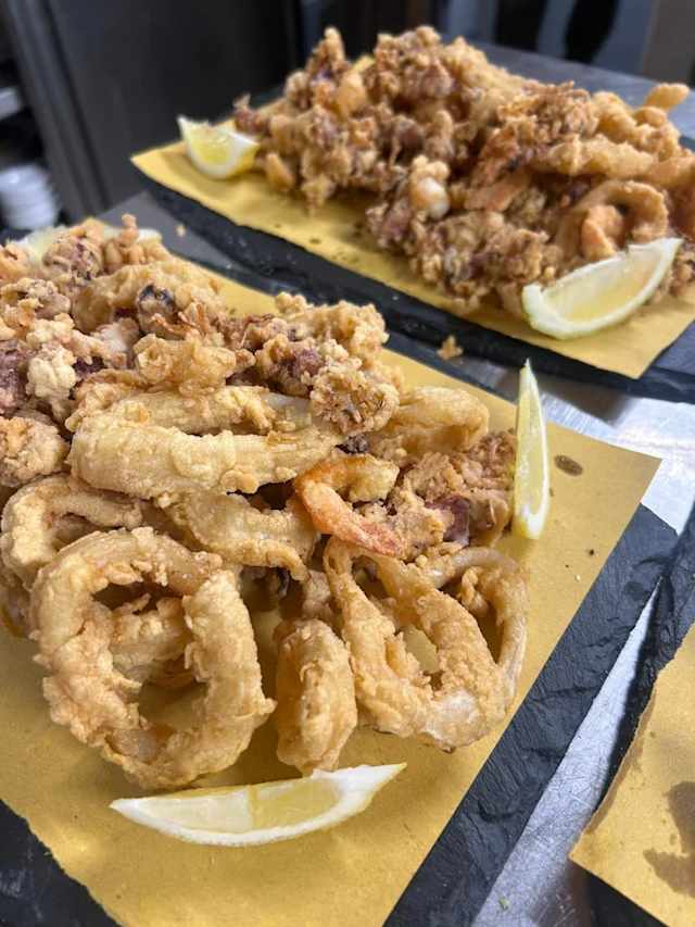 - Fungo ripieno, involtino di zucchine, involtino di melanzane ,ricotta fritta, pitoncino cotto e formaggio, montanarina, caponata di melanzane, polpettine in agrodolce, melanzane fritta, ricotta miele e noci, accompagnato da pasta fritta