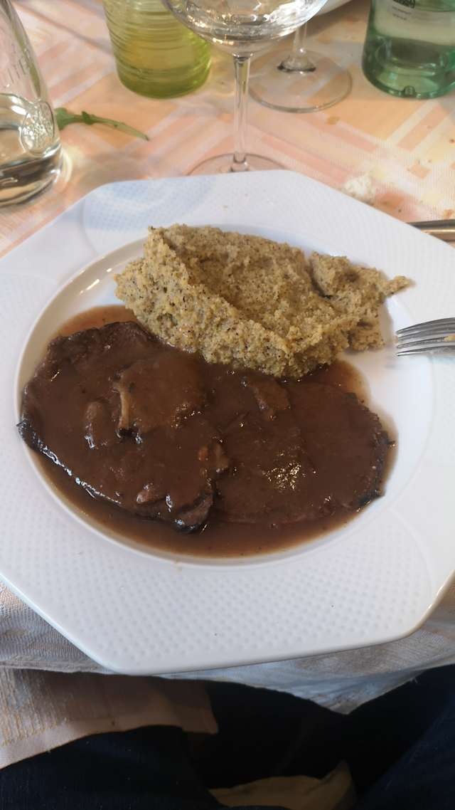- Polenta mantecata coi formaggi su base di burro, salvia e aglio, arricchita con pancetta e cipolla. Per concludere un uovo all'occhio di bue e una spolverata di parmigiano