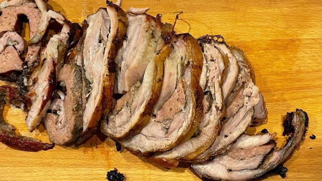 La tradizionale carne di maiale nostrana su letto di cicorietta