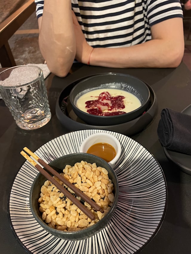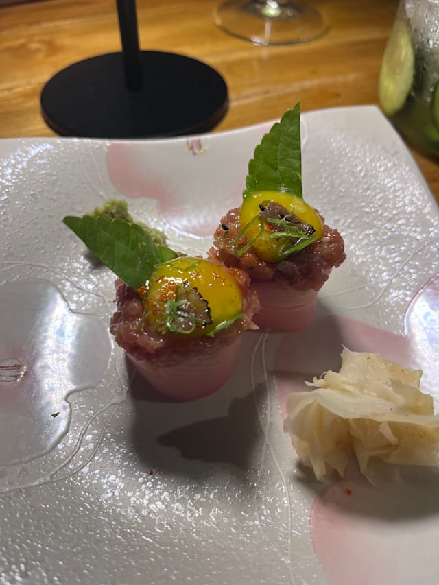 5.5/10Items on the drinks menu were not available. Both our Negroni were served with barely two small ice cubes in them so did not feel properly chilled. Though the Gyoza had nice flavours, it was soggy and very greasy and felt as if it had been microwaved. The sushi rolls we had, though nicely presented, were underwhelming. You can get much better sushi elsewhere in Lisbon. Service was attentive and nice.