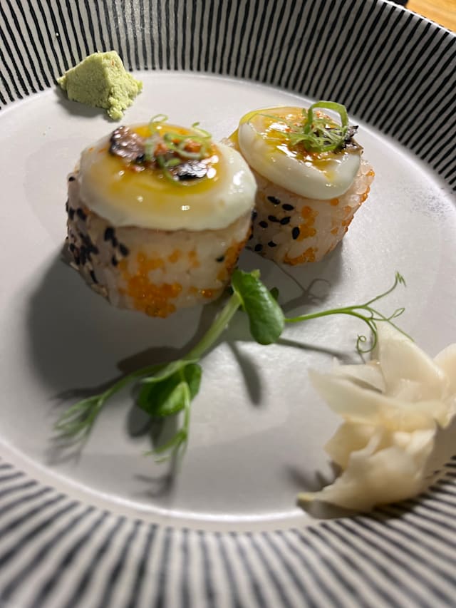 9.5/10Excellent food and cool atmosphere. Order the aubergine appetizer. Super fresh sushi. Only recommendation for restaurant is to redirect the outside light so it’s not pointing inside. It was extremely bright.