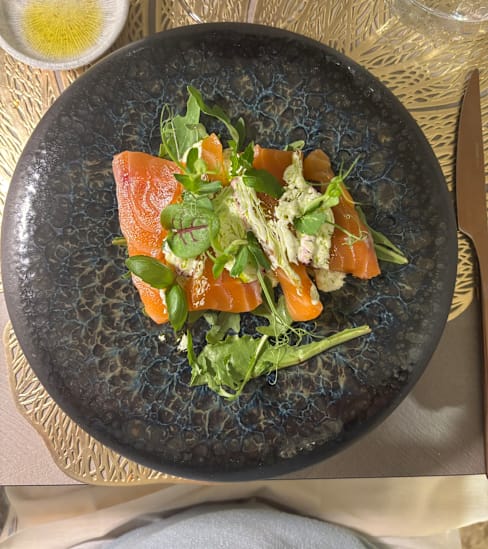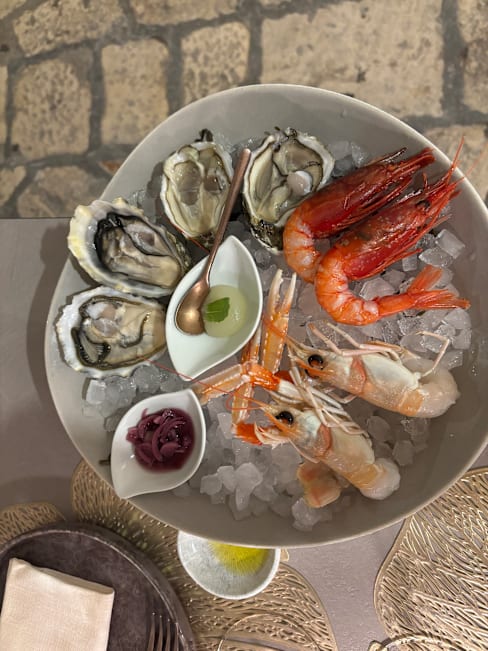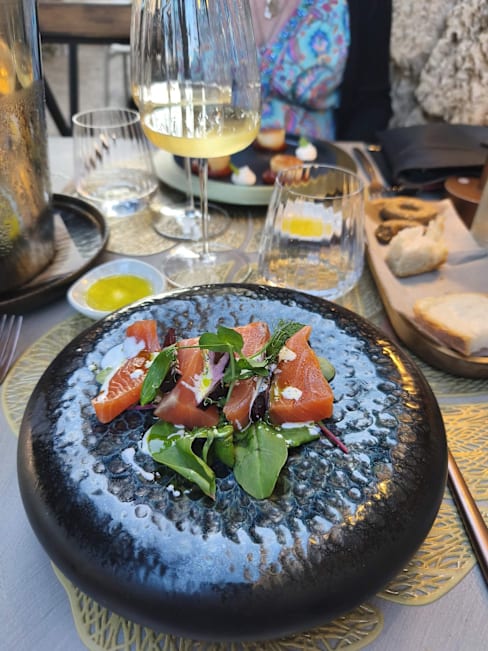 7/10Nice atmosphere in the evening with ambient music. Food was average. Why serving "foreign" seafood when you have the med some hundred steps away. Food was rather blend. We would have appreciated the chefs seasoning to max the taste. Quite pricy when taking into consideration the size of the dishes. Would recommend to do something with the ammenities of the restaurant. You'll get air-fried when using the restroom as it is placed right above the kitchen. There is room to improve.