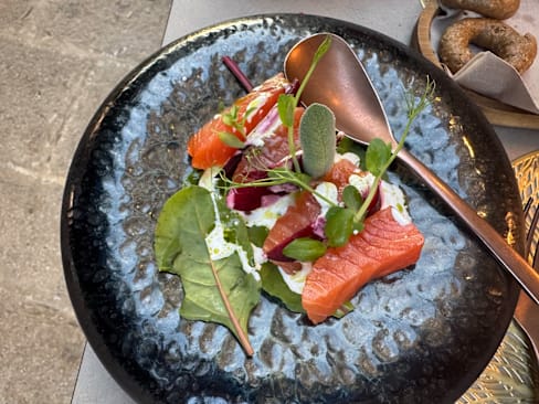 8/10Very good food – small portions, but beautifully presented. The wine was a bit of a disappointment: we paid €30 for a bottle we later saw at the airport for €12 :) As for the view – I know it’s not the restaurant’s fault, but the building across the street is under renovation and covered in scaffolding netting.