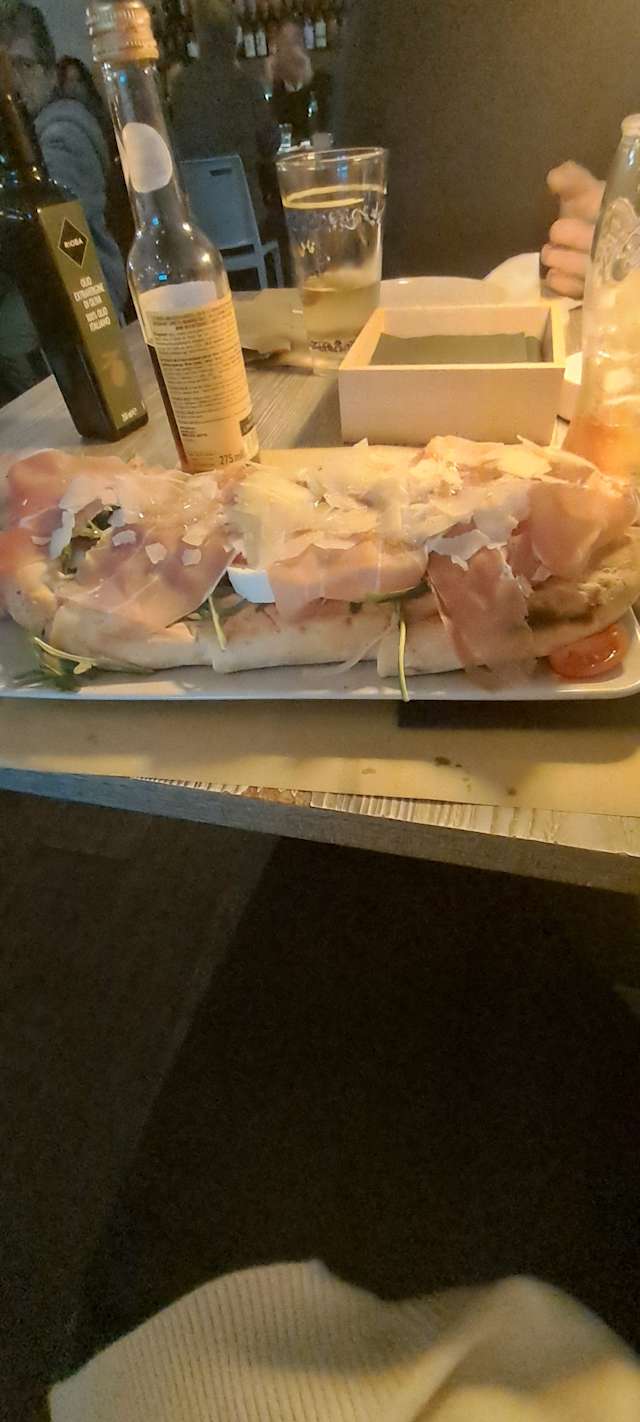 - Pinsa mammola,con mozzarella di bufala, pomodorini, rucola e prosciutto crudo.