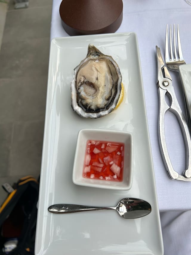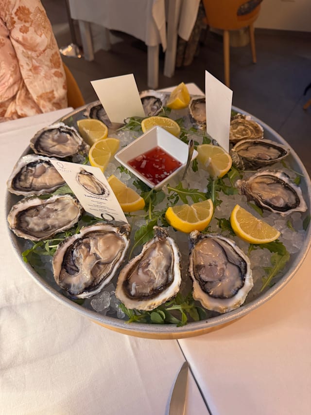 10/10Great location, very quiet and relaxing. Elegant and super clean. Great raw fish, great oysters selection, great main courses. Really good wine selection.