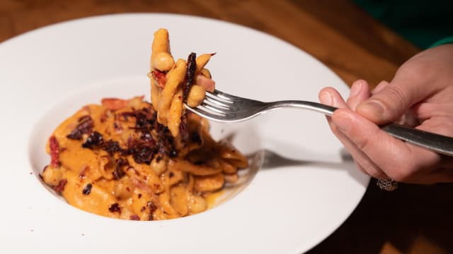 Fusillo al ferretto con ragù bianco di maialino e cacioricotta di capra