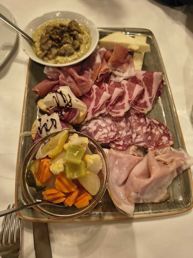 - Salame bresciano, prosciutto crudo di parma, speck alto adige, porchetta al forno, mortadella al pistacchio, grissino si sfoglia, nostra giardiniera