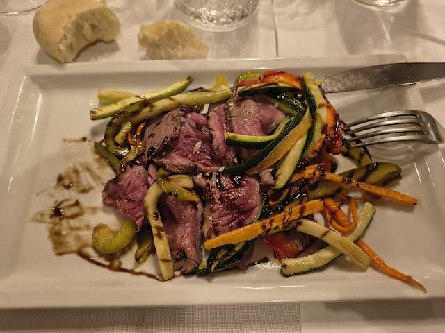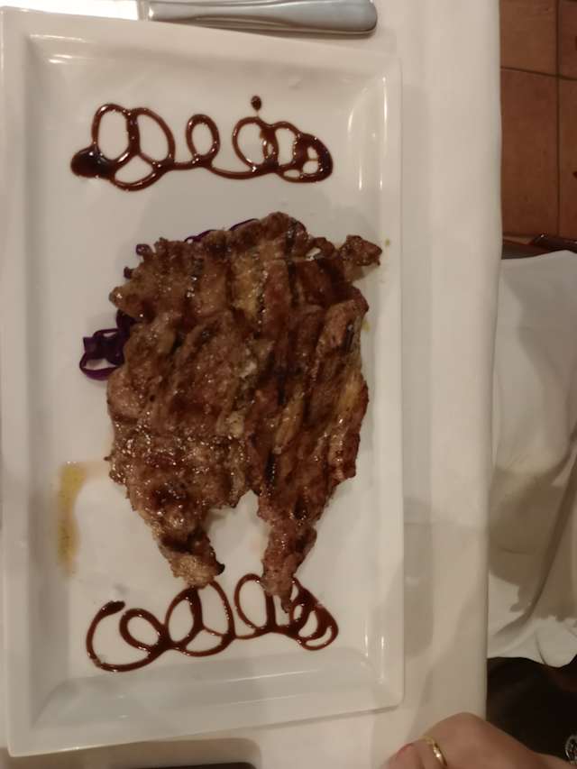 - Scottona Mazury cotta alla griglia laccata alla soia e miele con verdure alla julienne (peperoni,carote, zucchine)