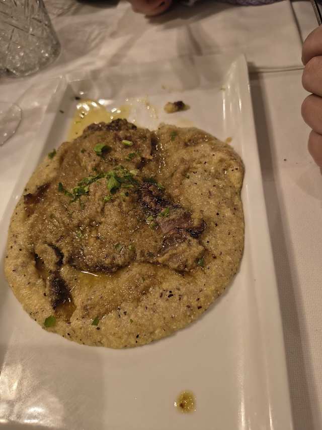 - Guancetta di manzo brasata al vino rosso con polenta fresca