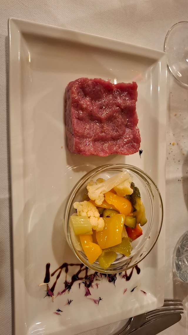- Battuta di controfiletto di cavallo alla griglia con salsa verde, pomodori secchi e scaglie di grana