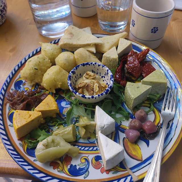 Affettati e formaggi freschi tipici del sud italia, verdure di stagione e zeppoline dello chef