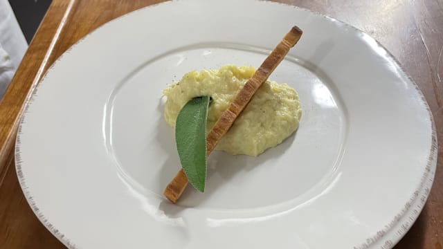 Tortelli di ricotta e spinaci spuma di patate al tartufo e nocciole salate