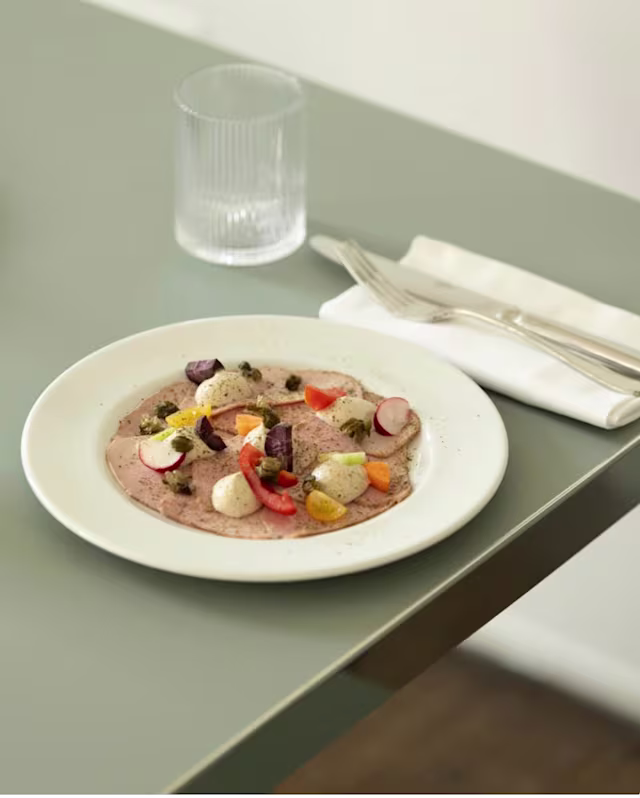 - Spuma di tonnato, vitello all’olio, cappero croccante e la sua polvere
