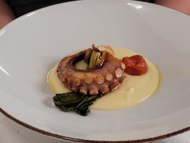 10/10Super cozy and friendly place. Service staff and the owner/chef were friendly and accommodating to non-Italian speakers. We had a wonderful evening, with comforting foods and cheerful atmosphere. The octopus and potato purée antipasti was magical, and the cacio e Pepe Ravioli was rich and super satisfying. Highly recommend. We only wish we had been hungry enough for desserts, which looked amazing on neighboring tables.