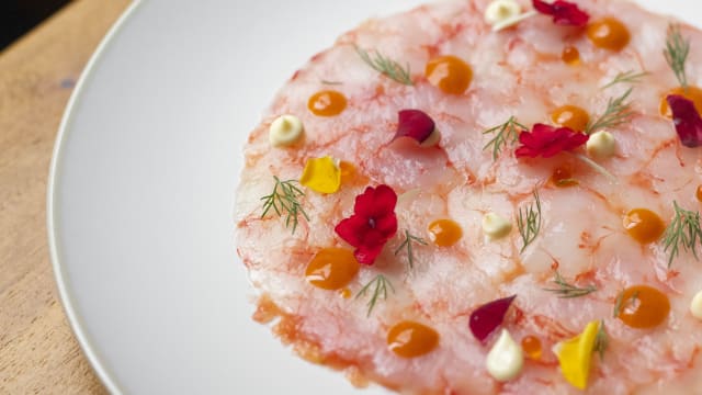 Carpaccio de gambas rojas de palamós, karashi y lima