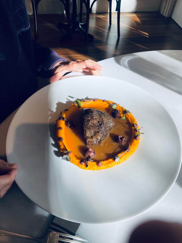 - Carrillera de ternera, salsa bordelesa, bonitato, setas