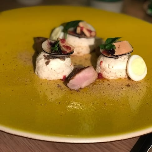 7/10Empty restaurant. We were greeted by the owner which is very friendly. We took the degustation menu. Some dishes were very very good, others were ok. Price of 115/person no drinks is way to much. The lobster dish is terrible.