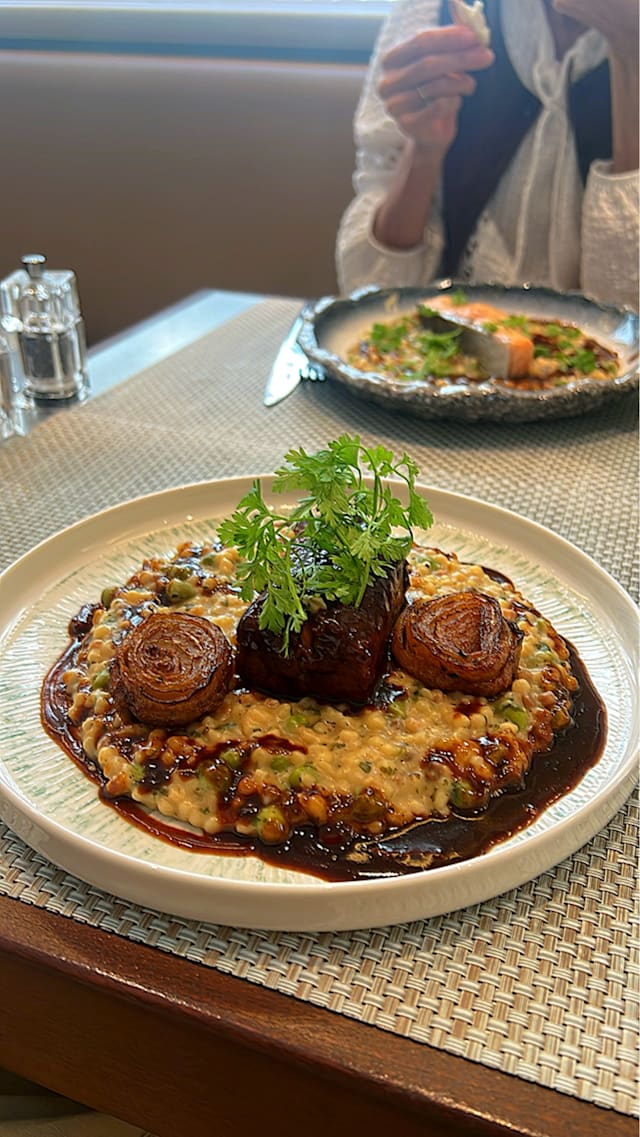 6.5/10We were excited by the photos of the food and showed up right when they opened for dinner service. However, when we walked into the restaurant no employees were there. Seeing as it was attached to a hotel, we walked over to the front desk and finally found the host to seat us. One other group ate while we had dinner, but otherwise it was empty. One funny thing we noticed is that 90% of the tables in the restaurant were set with jams and other breakfast items, and that the restaurant was clearly also the hotel’s breakfast buffet. When it comes to the food, we had the duck, the steak, and the mixed vegetables. The duck tasted amazing, and the vegetables were good as well. Presentation wise, those dishes also shined. When it comes to the steak, it was dreadful on all fronts. They ended up giving us a 20% discount on the meal, not sure if it was for the slow service or the large amount of steak left uneaten.