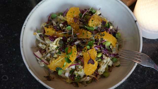 - Pané de soja, pousses d’épinards, oignons confits, sauce moutarde à l’ancienne