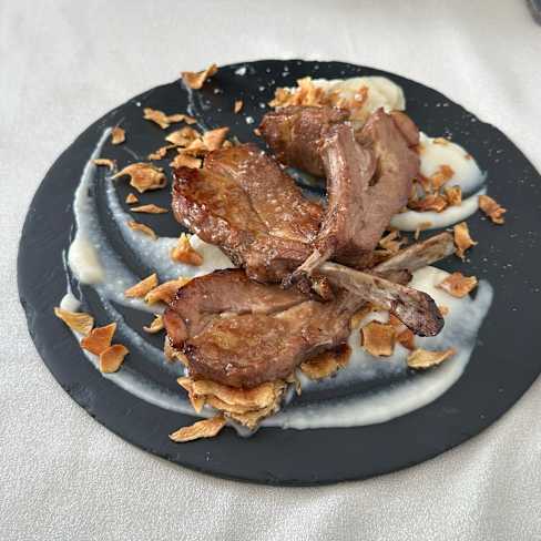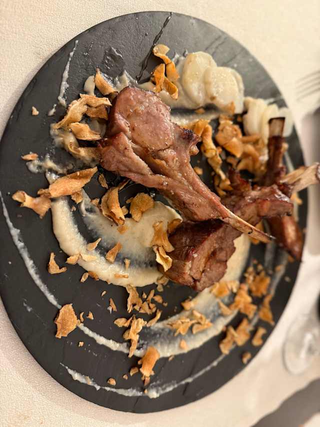 10/10sweet lamb chops, savory squid ink fettuccine~