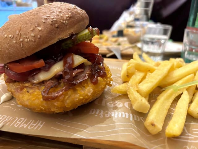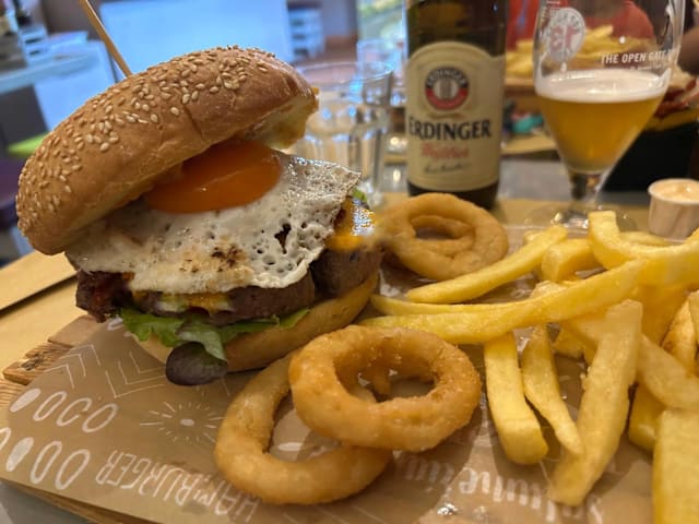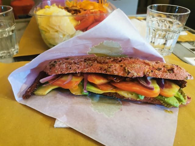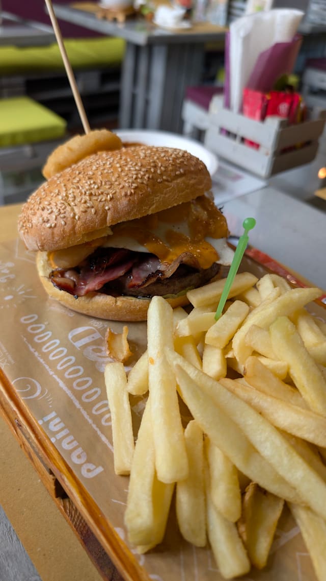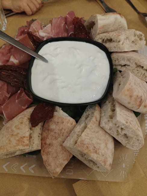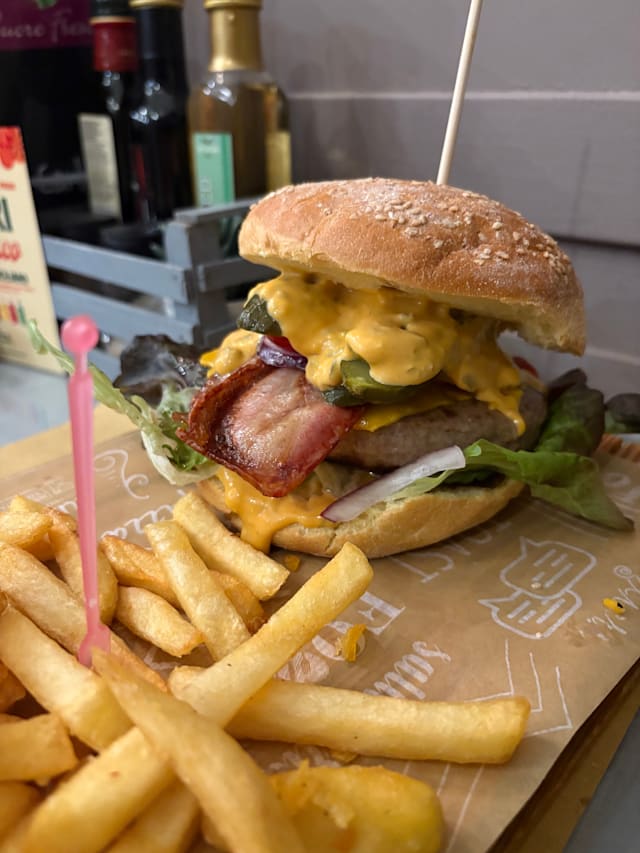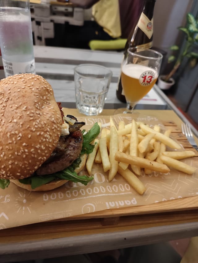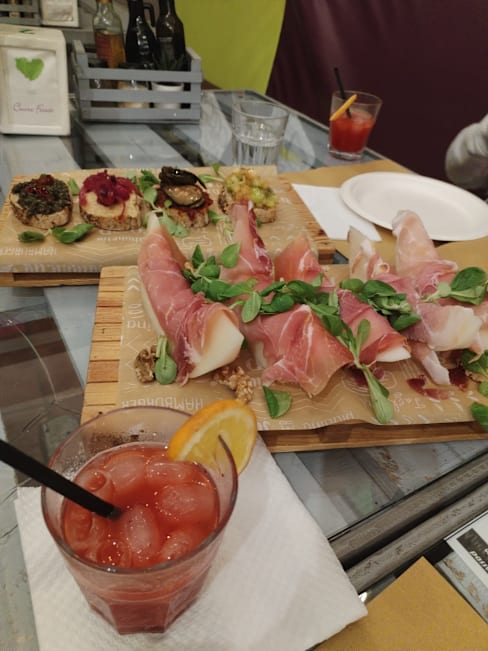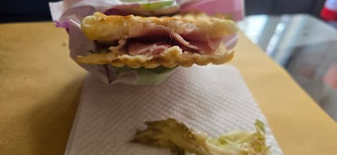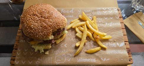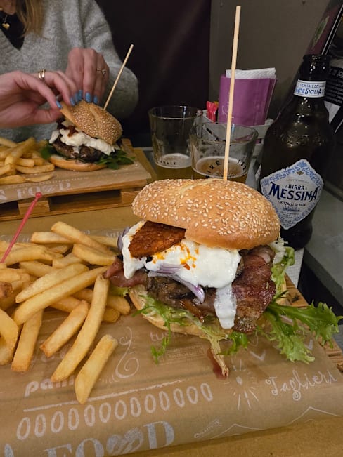 5/10The focaccia was a disappointment. It wasn't what we know focaccia to be at all. It was more like a thin toast with premium but tasteless ham and cheese. The lettuce was warm, soft and dry with a bitter taste and we removed it from the toast. The burger was passable. It came with fries but they were very few (the photo was after I'd eaten 2-3 fries. Still depressing). The burger was a bit cold and the taste wasn't anything to die for. The patty looked like it was from frozen meat that they defrosted and threw on a pan for a few minutes. Not a hint of juices. Dry and light taste. The sauce is something like the Ketchup - Mayo sauce from Heinz. The rest of the toppings were fine. Prices were okay. €8.40 for this burger and €4.80 for the focaccia is expected. €1.50 coperto charge each is also normal for Italy. We were supposed to get 20% off through The Fork but we weren't given the discount. The lady that served us was nice. Not recommended.