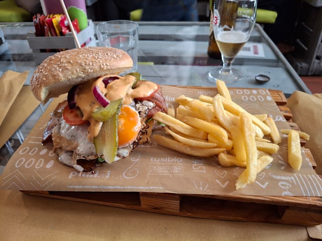 8.5/10Tasty although messy burgers. Wished for more salt with our fries. Didn't get a cocktail menu, were pointed to the electronic one and that is it. Overall good experience. Thank you!