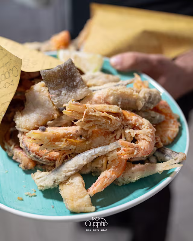 - Calamari, gamberi, totani, paranzella, alici, e bocconcini di baccalà