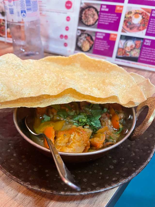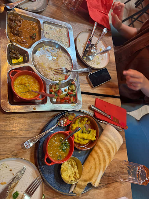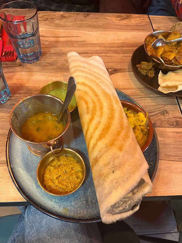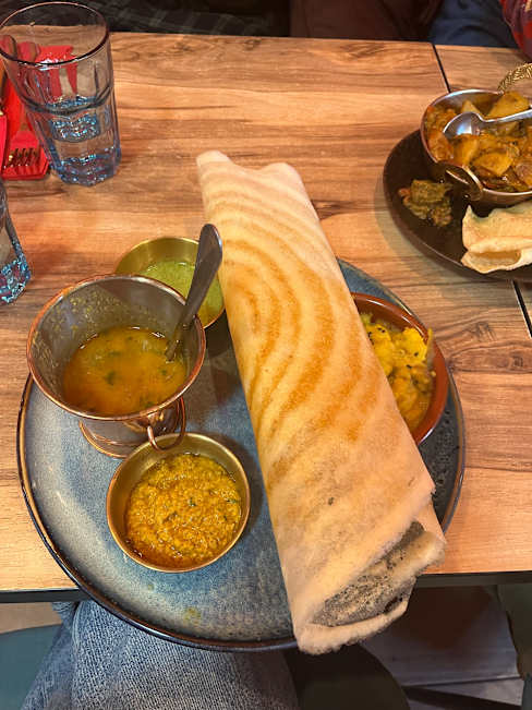 5/10The fritters and pani puris were tasty, but the experience was disappointing. We mentioned our Fork booking with a 30% discount upon arrival, yet were only told at payment it applied to large mains—this should’ve been clarified earlier. We came for dosa and uttapam but were told all 3 keys dishes were unavailable; dosas and uttapam weren’t available, only to see another table served next to us being served later. We were expected to eat our shared meal from tiny pani puri bowls and had to request proper plates, which should have been standard. Menus were sticky and stained, which was off-putting. While a few dishes delivered on flavor, the poor communication, and basic oversights made the visit frustrating. We left feeling disappointed and unlikely to return. A shame, as the concept has potential.