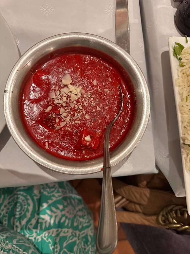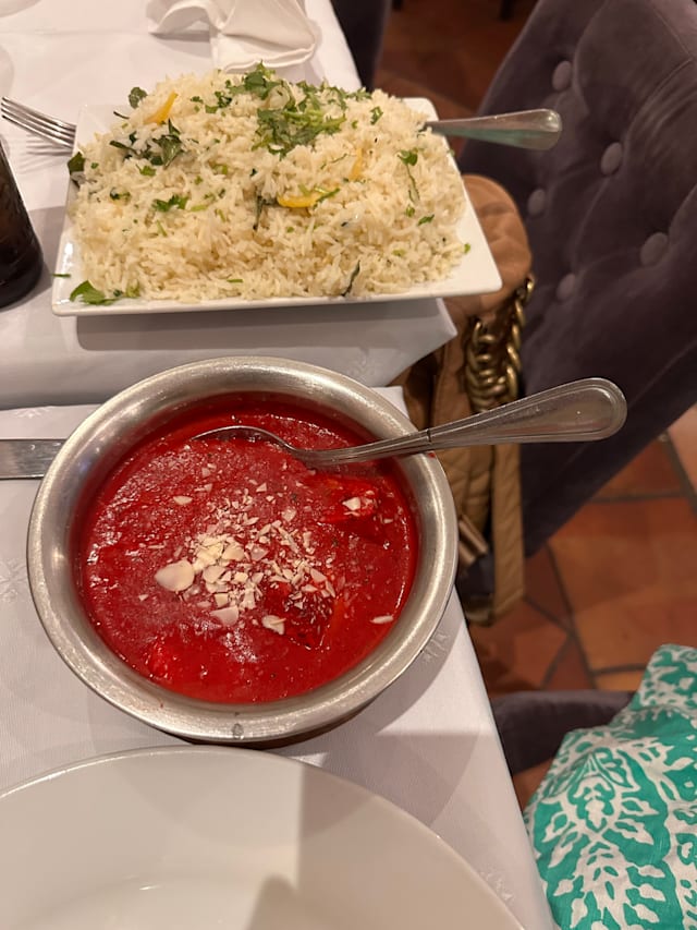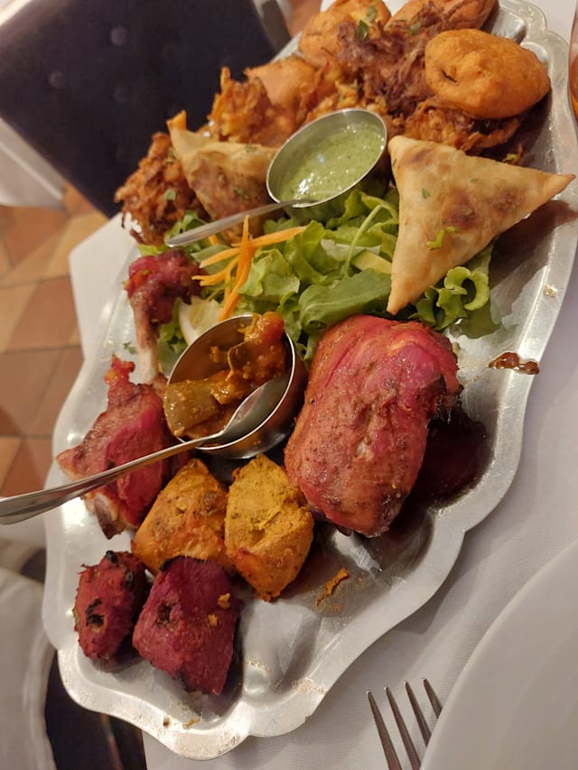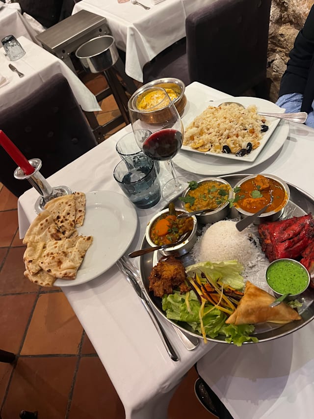9/10We have tried most Indian Restaurants along thisCoast in the last 15 years. This is a VERY small restaurant, no bigger than a semi detached lounge. But very nicely decorated and classy. We sta down very quickly and were served two delicious popodoms which were crisp and dry. The onion Bhaji were generous and also not oily and some of the best I have tasted. We had two curry's .. A Chicken Madras and a Chicken Dupiaza. The Madras was VERY spicy, perhaps a little TOO spicy for me and I usually love my curry hot and spicy. The sauce was a little TOO lemony for me but the chicken was cooked to perfection. The dupiaza was not spicy at all and ironically when we combined the two sauces we had a perfect sauce. All in all I would absolutely eat here again and reccomend this re4staurant to anyone visiting the delightful town of Mougins and wishing to eat something different from the VERY PRICEY French restaurants that the town offers. Our meal for two was under €50 so VERY good value for money in this area.