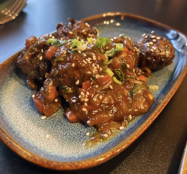 - Crispy vegetable balls tossed in a savory, tangy indo-chinese sauce with a hint of soy and garlic