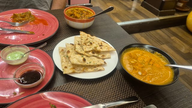 10/10This was exactly the food and ambience experience we were looking for on this night: traditional Indian food in a quiet, friendly setting. We ordered our favorite dishes: vegetable pakora, garlic naan, chana masala, and butter chicken. Everything was serve red hot and delicious with a rich and familiar flavor. Service was excellent and prompt. The wait staff was very friendly.