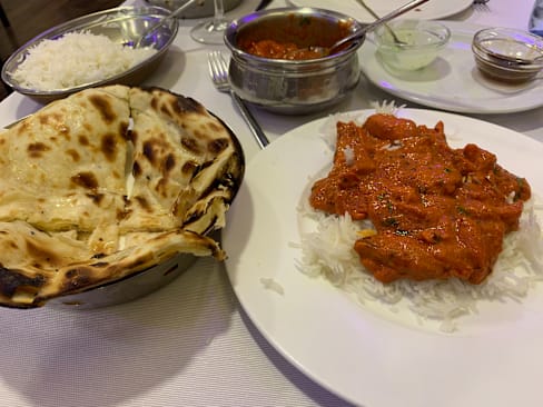 10/10This was exactly the food and ambience experience we were looking for on this night: traditional Indian food in a quiet, friendly setting. We ordered our favorite dishes: vegetable pakora, garlic naan, chana masala, and butter chicken. Everything was serve red hot and delicious with a rich and familiar flavor. Service was excellent and prompt. The wait staff was very friendly.