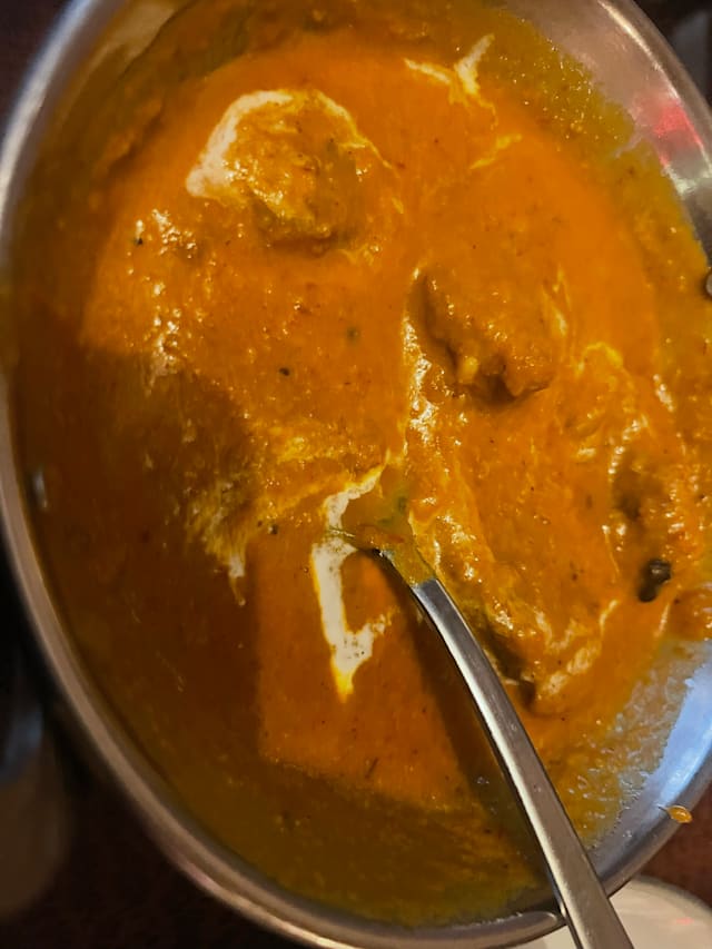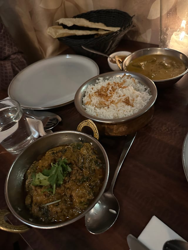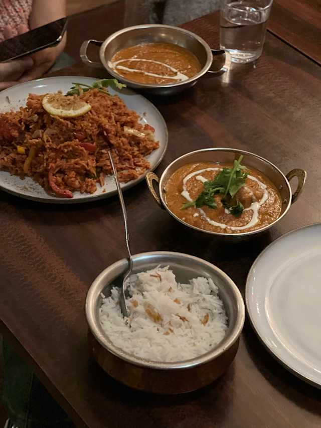 6.5/10All the food tasted pretty much the same. We ordered the mango tikka masala and the garlic tikka masala — the sauce was identical in both, just with mango added to one and garlic to the other. Overall, there was barely any difference in flavor. Everything was overly sweet, more like a dessert than a proper main course. Portions were quite small, so the pricing felt unreasonable. The interior was okay — quiet atmosphere with soft background music. However, cleanliness could definitely be improved. The tables were sticky, and the restroom wasn’t very clean either.