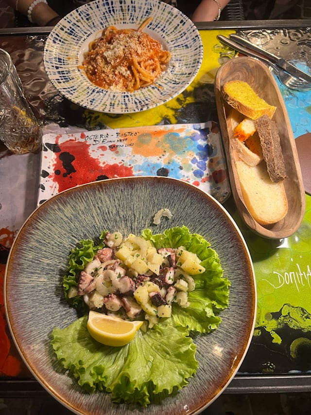 9.5/10Like having dinner with family - we were greeted by nonno, and told a bit about the food. Everything is homemade right down to the delicious bread. We were not too hungry so both had pastas - carbonara and gricia. The portions looked small but they weren't. We tried very hard but neither of us could quite finish even though delicious. Paired with an inexpensive wine it was the perfect meal. We had no room for dessert but did enjoy the complimentary shot of limoncello and cookie that was presented with our check. Remember I said it was like family? The son said he had a surprise and took a "romantic picture" of the two of us, then later presented it to us in a small frame. Who does that?? Only the perfect restaurant. Highly recommend.