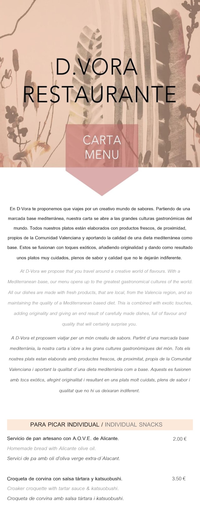 8.5/10I booked this restaurant 1 month in advance via the third party (fork) app. This is a high end restaurant but the main reason for eating here has to be the views from the terrace. This is specifically where I booked for a 20th wedding anniversary. On arrival, although the booking was found there was no mention of it being a booking for the terrace and of course there was no room so we had a table with a vague view out of some glass doors! Whilst the food was excellent (and priced as such). The views were non existent which spoilt a special occasion. I don't know weather this is the fault of the fork or D-Vora but it would be my advice to ring the restaurant directly to check and double check the booking. There is little point visiting unless you have a table on the terrace!