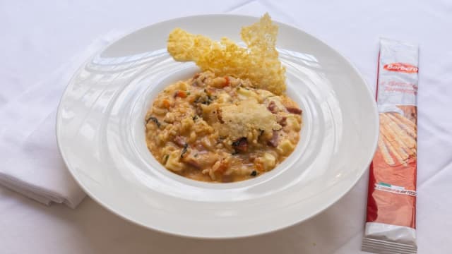 Risotto di parma, prosciutto di parma, mozzarella, tomates fraîche & basilic