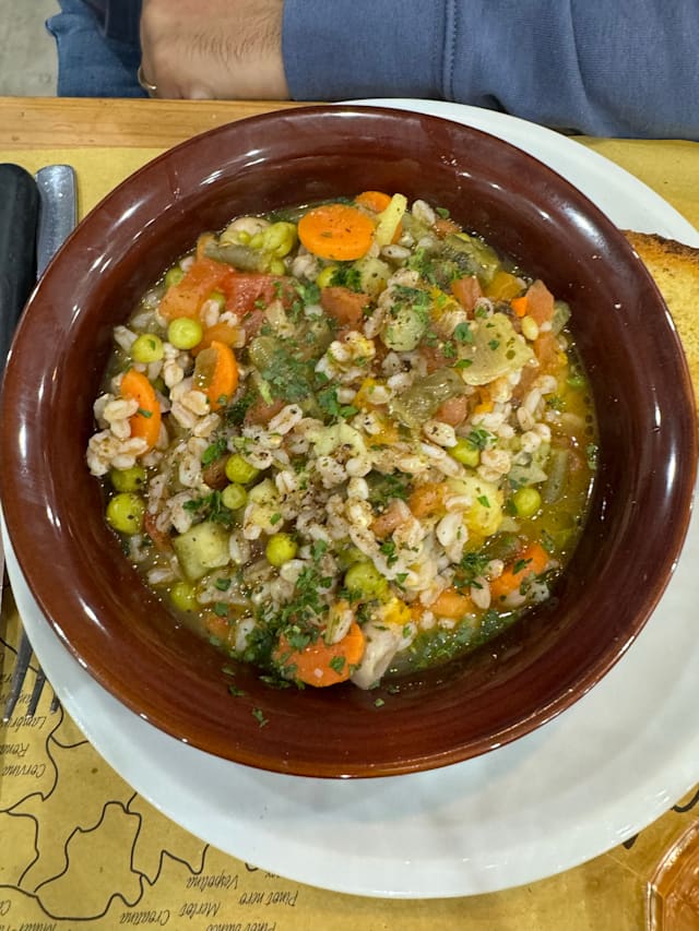 - con pomodoro, pancetta di Norcia, cannellini e scaglie di parmigiano