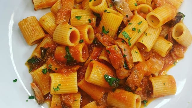 pepe, guanciale, pomodoro fresco e ricotta salata