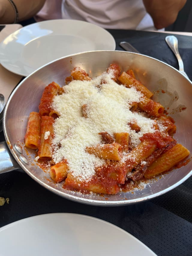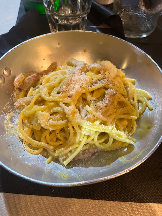 4/10The servant was very polite. But the food was not good at all, the meat in the pasta was not cooked enough, so the fat was very soft. And the other thing I find very disappointing was that they take 4 euro for service. And then they write on the note that tip is not included. And I paid 4 euro for a bottle of water. Then a lot af the discount is gone. Alle the other places we have eaten have taken 2,5 euro for a bottle of water. And the food is overall expensive. We where at another restaurant, where we got - like yesterday - 2 x pasta, water, a glass of of wine and a glass of of beer and that meal we paid the same for as we did for this one after the discount, but the quality was 10 times better.