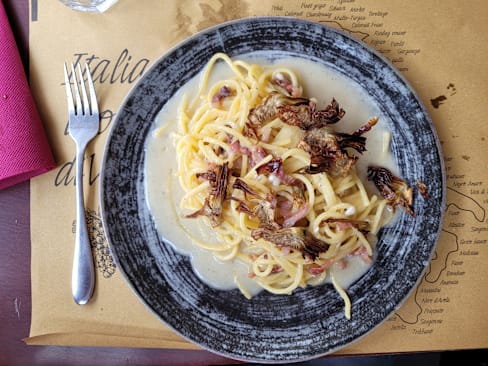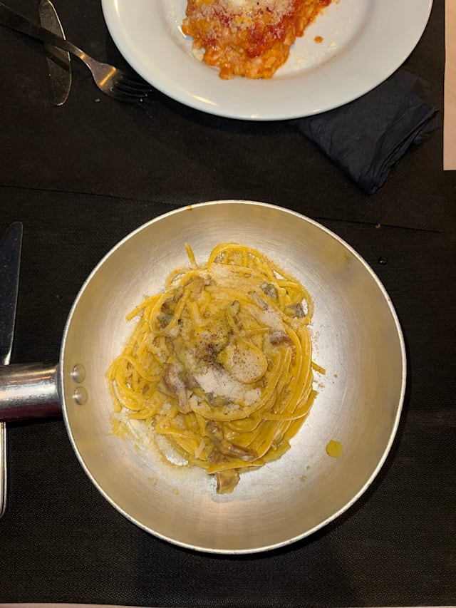 8.5/10Best cheese gnocchi in Rome. Nice pizza. Delicious seafood linguine, but the 2 crustaceans had no edible parts to them, otherwise the single shrimp, 6 clams, 6 mussels were good.