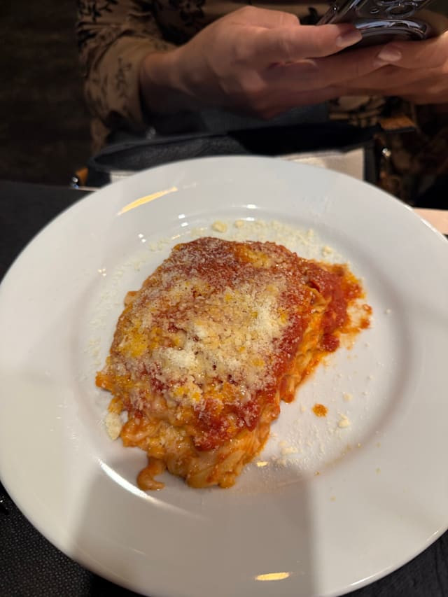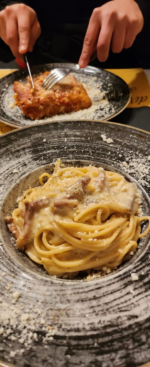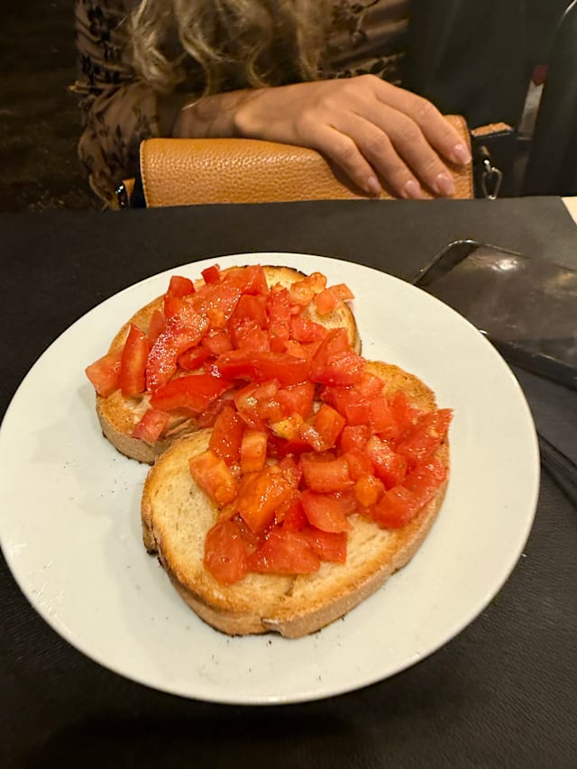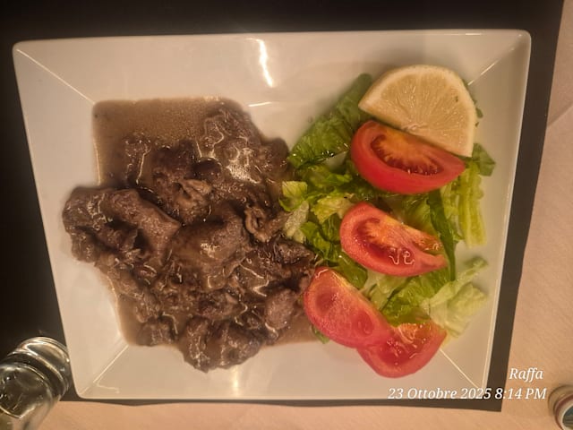 10/10First meal out in Rome, came in about 1-1.5hrs towards closing and was easy to get a table at that time. Food quality and wait times were good, friendly staff members with several tables around me as well. Good house red wine went well with the meal. Ordered a simple but tasty bruschetta to start. Primi was Lasanga alla Bolognese (good portion & taste/texture, comes with a good amount of extra cheese on plate). Secondi was Petto di Pollo (Grilled Chicken Breast) which came as three slices lengthwise (minimal seasoning) but comes with small green salad, tomatoes, lemon. (Rubbed lemon to add a little zing to the chicken). For dolce, got the tiramisu which was recommended and tasty. Pretty good meal for a walk through the neighborhood and wouldn't mind tasting more of the menu in the future.