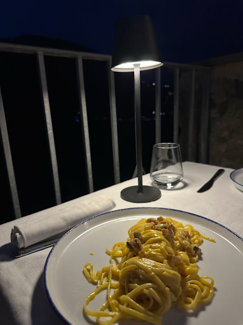 10/10Our recent trip to Amalfi Coast and stay in Porgerola was so special and made even better when we shared a fantastic dinner at Da Bruno alla Carcara with our very dear friends. We were a party of ten and Monica and her husband, chef/owners handled us with ease. Our patio table was perfect and our meal was delicious. The two pizzas (our apps) were so yummy, especially the Bruno, it was a big hit. We ordered most entrees on the menu, all were fabulous!! One exception was the pasta with clams, which were tiny and very few opened up, making them unsafe for consumption. After dinner we were invited to their lower patio for a group photo. We invited the hosts and pizza maker, to be in our photo, they’re just so much fun and take great pride in their trattoria!! We ended with tasty, complimentary limoncello shots, for all…Salud!!