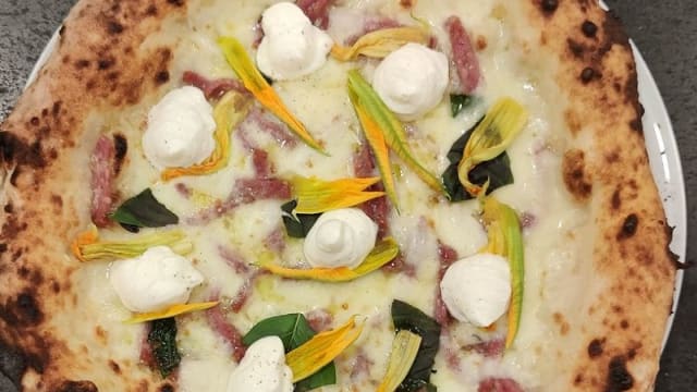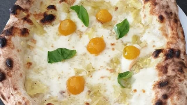 Pomodoro DOP fior di latte di Agerola, carciofi arrostiti, funghi, olive, cotto