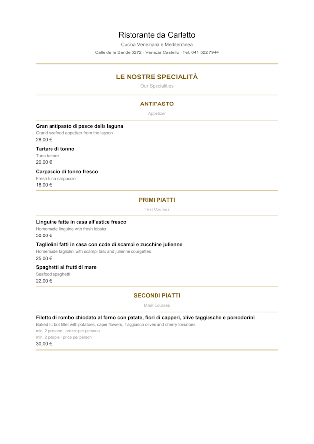 10/10perfect in every way. I highly recommend Da Carletto to anyone visiting Venice. Delicious food, friendly and professional staff.