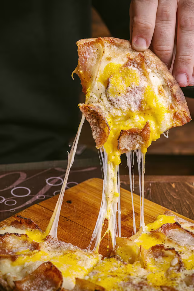 - Mozzarella, guanciale amatriciano, pecorino romano DOP, pepe, tuorlo di uovo pastorizzato