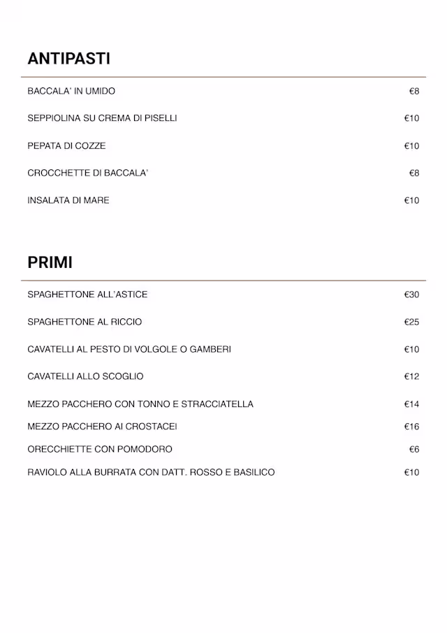Menù di pasquetta€50 per guest