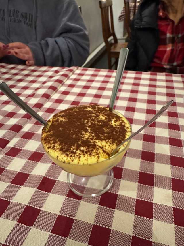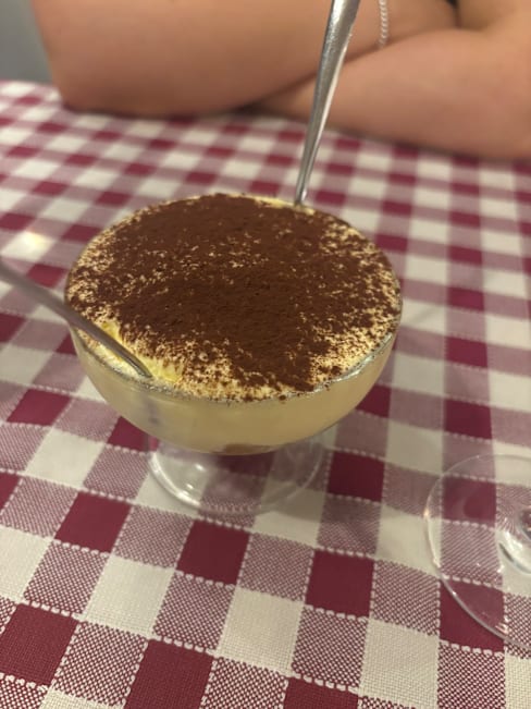 8/10The restaurant was nice with AC. It felt like a real Italian experience. The food was good. If you love coffee and tiramisu the you will love the tiramisu at this restaurant. It was good but I don't like coffee so the bottom had a strong expresso flavour which I didn't like. I think this was my least favorite thing.