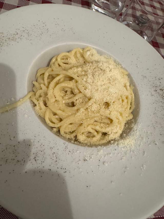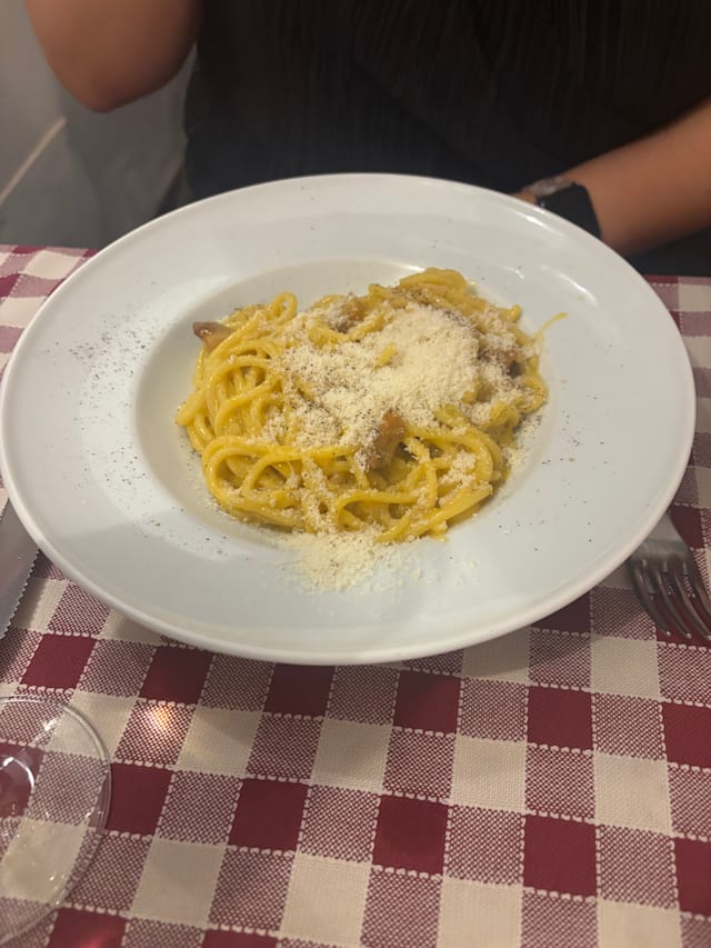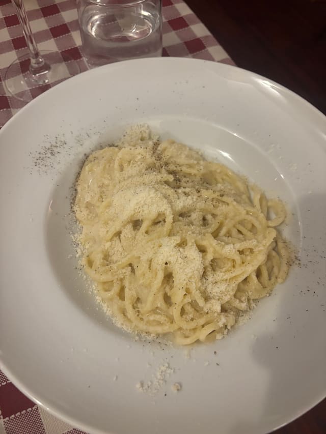 10/10This was a great place tucked away in busy Trastevere. We went based in a recommendation. Perfect option when you just aren’t sure where to go. We ordered cacio e pepe and the porkchop with potato and both were extremely delicious (especially the pork chop)! Our waitress was extremely kind and accommodating and loved the whole experience. Grazie